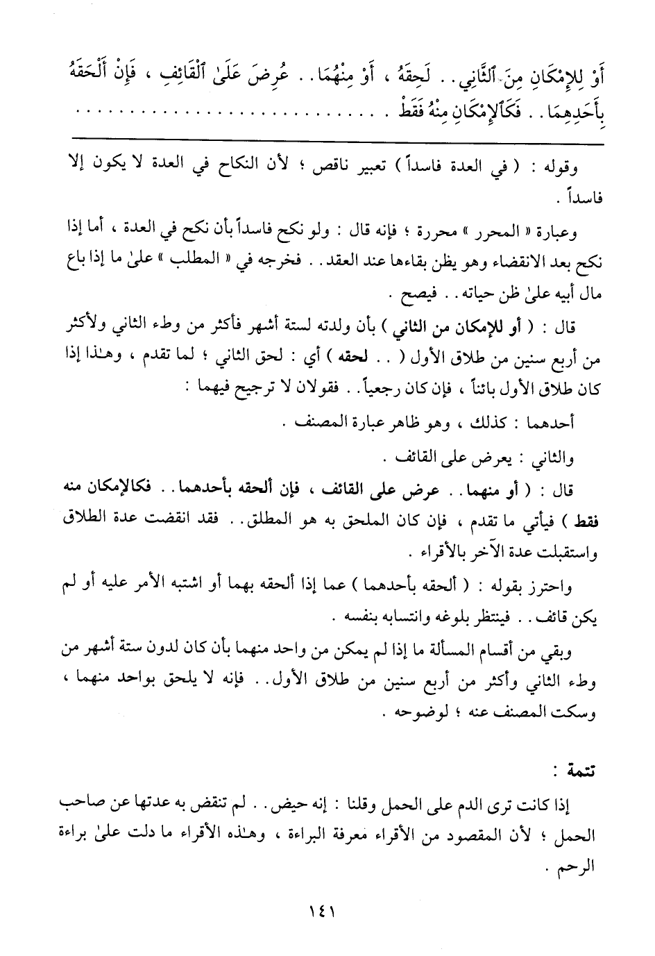 قال: (أو للإمكان من الثاني) بأن ولدته لستة أشهر فأكثر من وطء الثاني ولأكثر من أربع سنين من طلاق الأول) .. لحقه) أي: لحق الثاني؛ لما تقدم، وهذا إذا كان طلاق الأول بائنًا، فإن كان رجعيًا .. فقولان لا ترجيح فيهما: