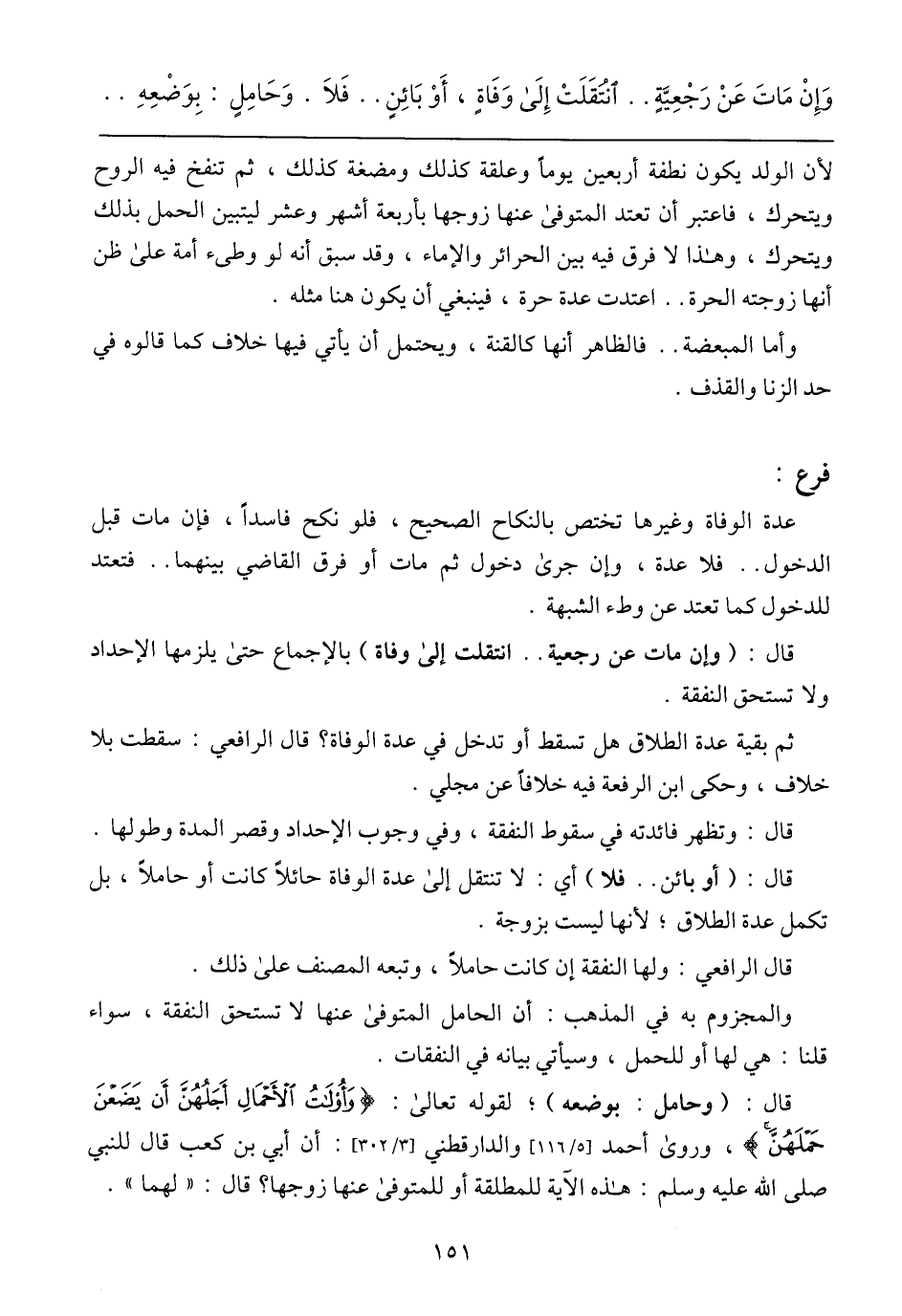 قال: (وحامل: بوضعه)، لقوله تعالى: {وَأُولَاتُ الْأَحْمَالِ أَجَلُهُنَّ أَن يَضَعْنَ حَمْلَهُنَّ}، وروى أحمد [5/ 116] والدارقطني [3/ 302]: أن أبي بن كعب قال للنبي صلى الله عليه وسلم: هذه الآية للمطلقة أو للمتوفى عنها زوجها؟ قال: (لهما).