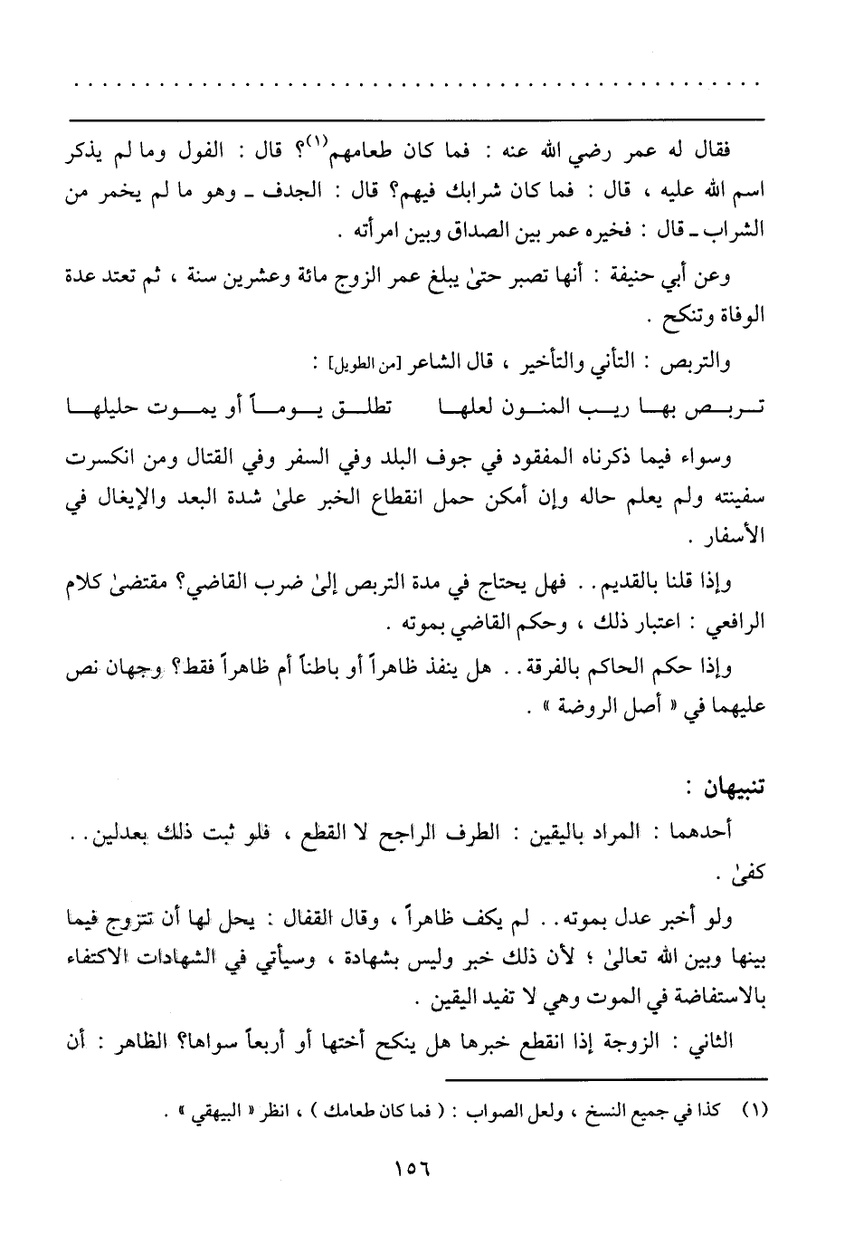 وإذا قلنا بالقديم .. فهل يحتاج في مدة التربص إلى ضرب القاضي؟ مقتضى كلام الرافعي: اعتبار ذلك، وحكم القاضي بموته.