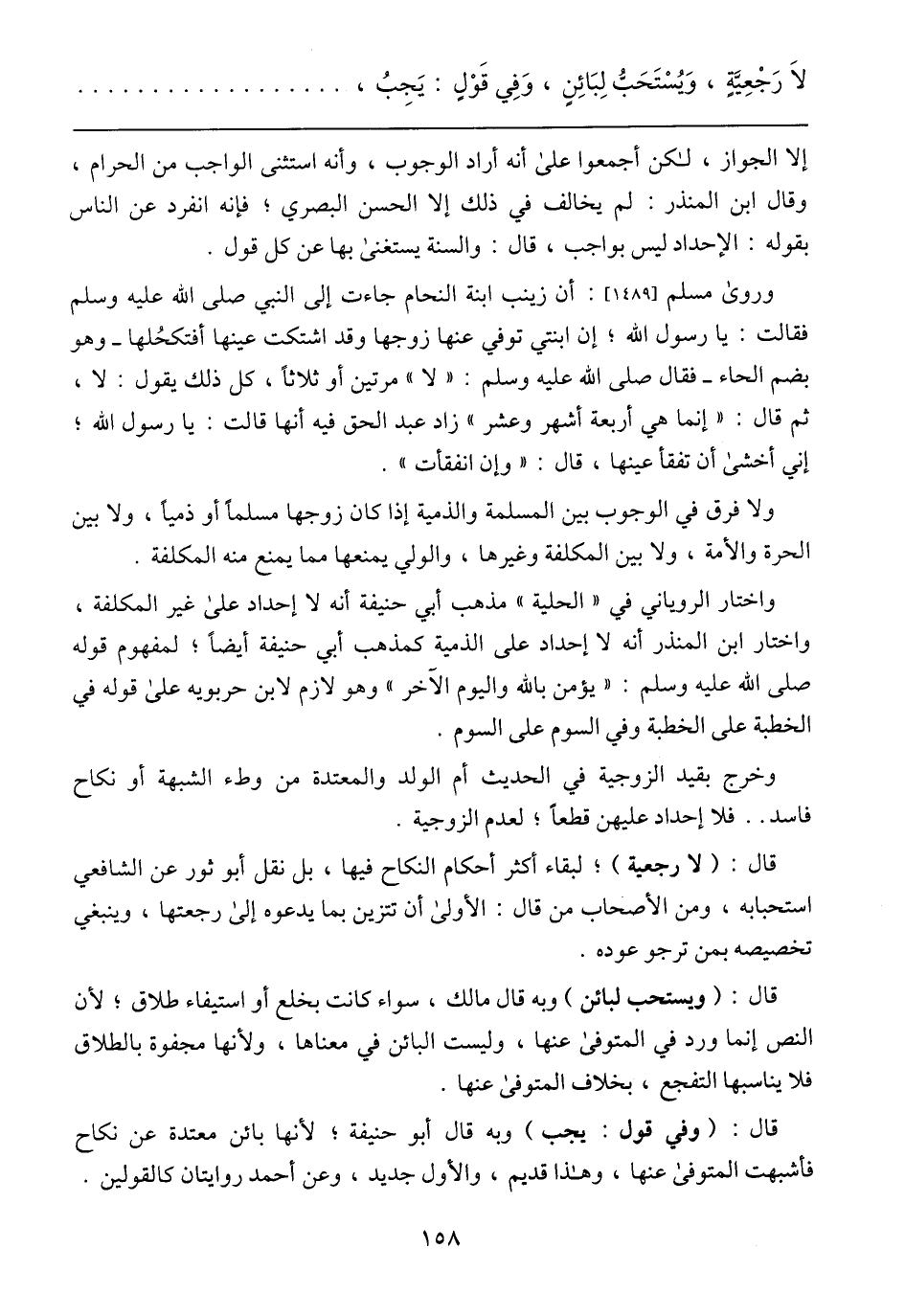 لًا رَجْعِيَّةٍ، ويُسْتَحَبُّ لِبَائِنٍ، وَفِي قَوْلٍ: يَجِبُ،