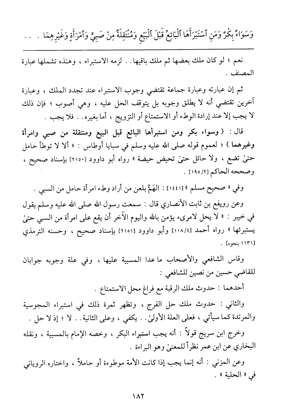 ثم إن عبارته وعبارة جماعة تقتضي وجوب الاستبراء عند تجدد الملك، وعبارة آخرين تقتضي أنه لا يطلق وجوبه بل يتوقف الحل عليه، وهي أصوب؛ فإن ذلك لا يجب إلا عند إرادة الوطء أو الاستمتاع أو التزويج، أما بغيره .. فلا يجب.