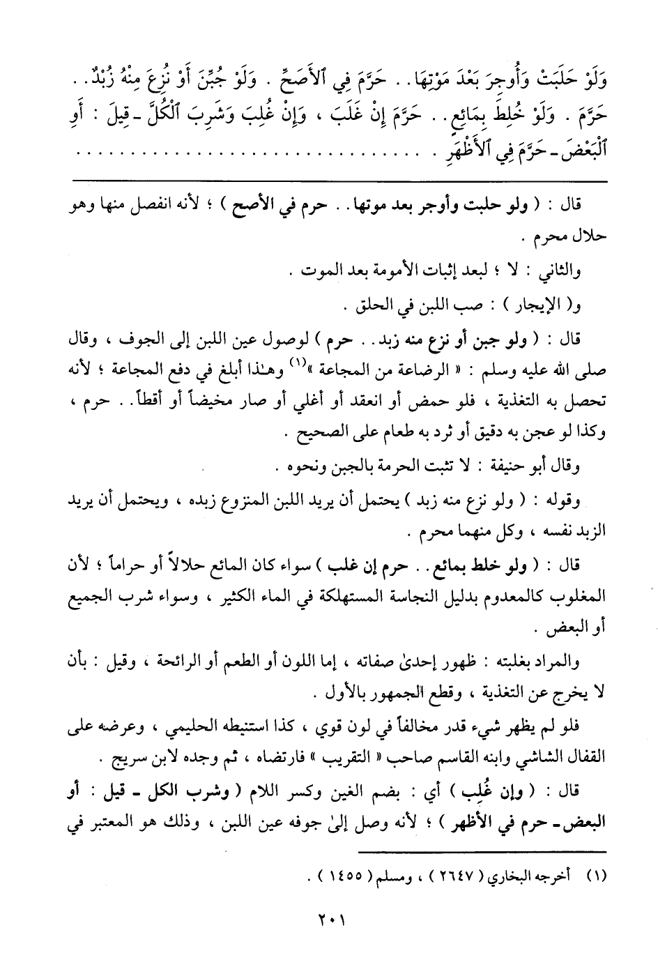 وقوله: (ولو نزع منه زبد) يحتمل أن يريد اللبن المنزوع زبده، ويحتمل أن يريد الزبد نفسه، وكل منهما محرم.