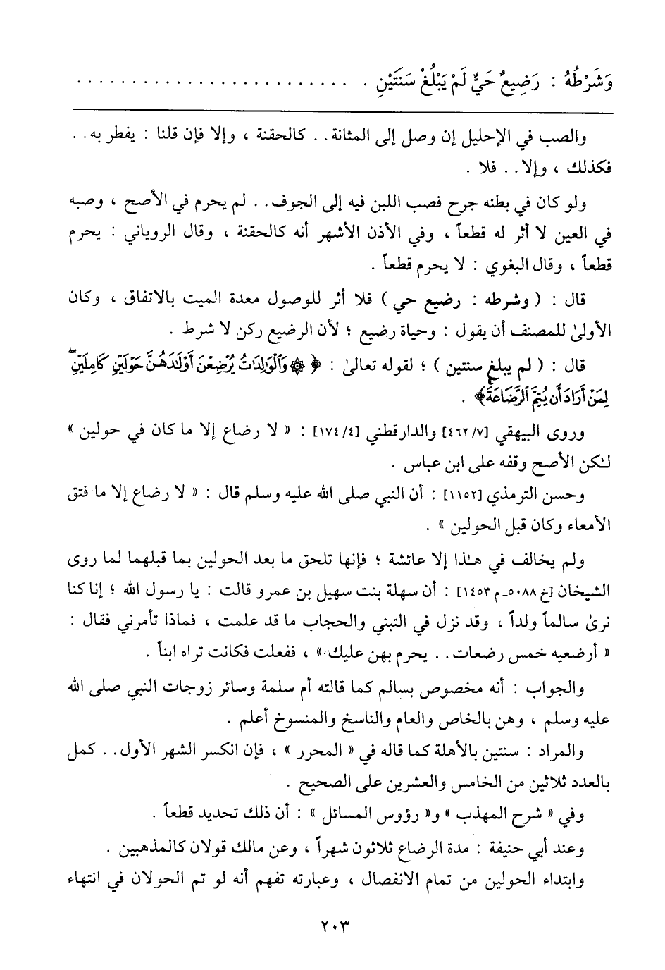 قال: (لم يبلغ سنتين)؛ لقوله تعالى: {والْوَالِدَاتُ يُرْضِعْنَ أَوْلادَهُنَّ حَوْلَيْنِ كَامِلَيْنِ لِمَنْ أَرَادَ أَن يُتِمَّ الرَّضَاعَةَ}.
