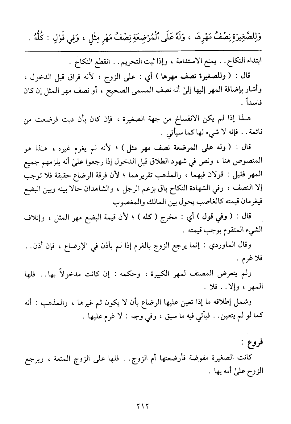 ولم يتعرض المصنف لمهر الكبيرة، وحكمه: إن كانت مدخولًا بها .. فلها المهر، وإلا فلا.