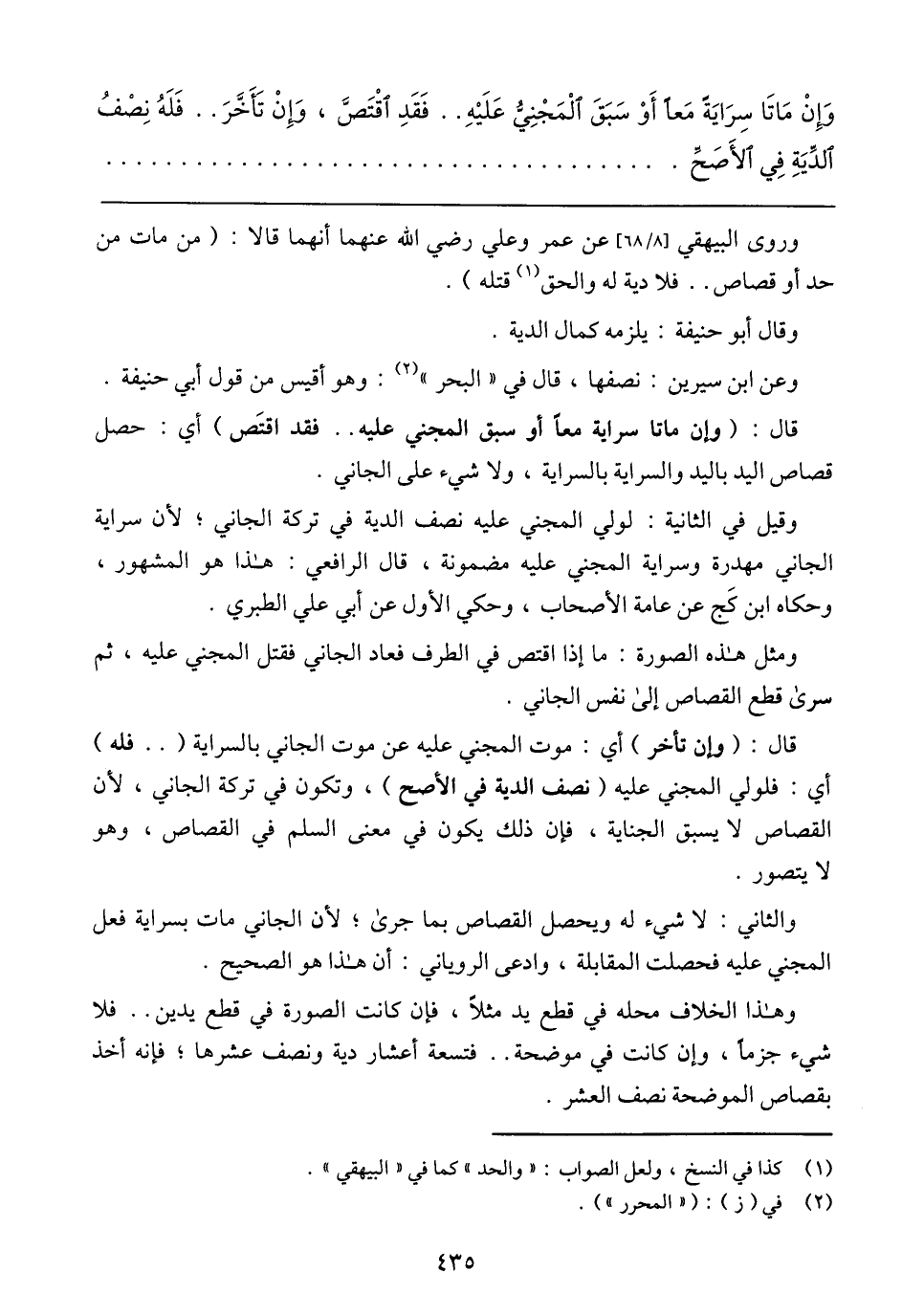 وهذا الخلاف محله في قطع يد مثلًا, فإن كانت الصورة في قطع يدين .. فلا شيء جزمًا, وإن كانت في موضحة .. فتسعة أعشار دية ونصف عشرها؛ فإنه أخذ بقصاص الكوضحة نصف العشر.