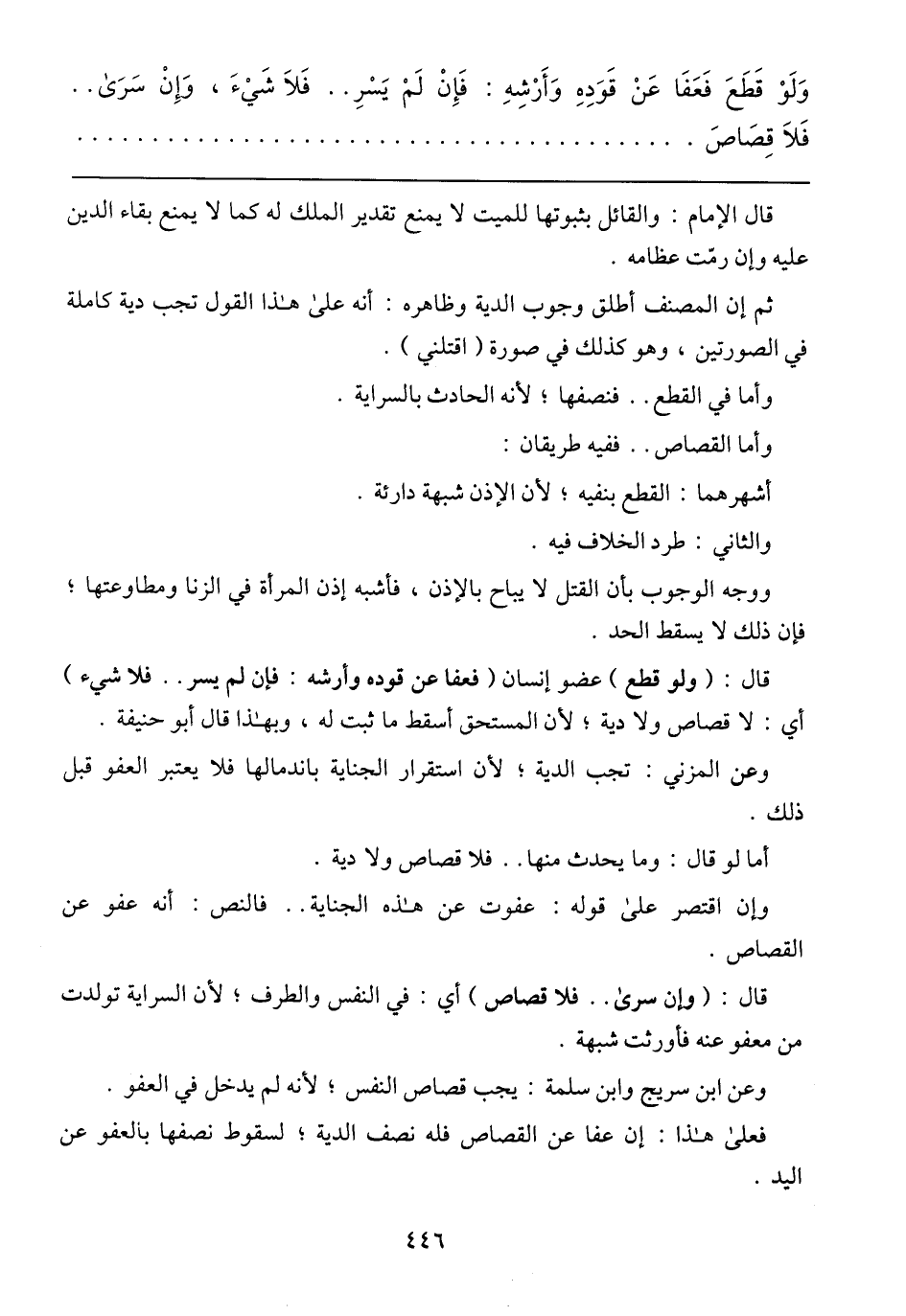 قال: (وإن سرى .. فلا قصاص) أي: في النفس والطرف؛ لأن السراية تولدت من معفو عنه فأورث شبهة.