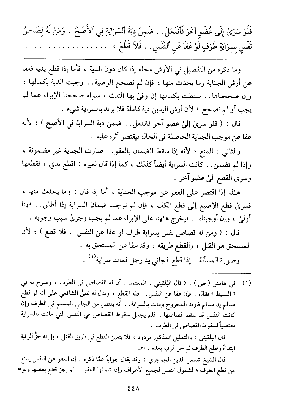 فَلَو سَرَى إلَى عُضوٍ آخَرَ فَانَدَمَلَ .. ضَمِنَ دِيَّةَ السِّرَايَة ِفِي الأصَحَّ. وَمَن لهٌ قَصَاصُ نَفسٍ بِسَرَايَةِ طَرفٍ لَو عَفَا عَن النَّفسِ .. فَلاَ قَطعَ,