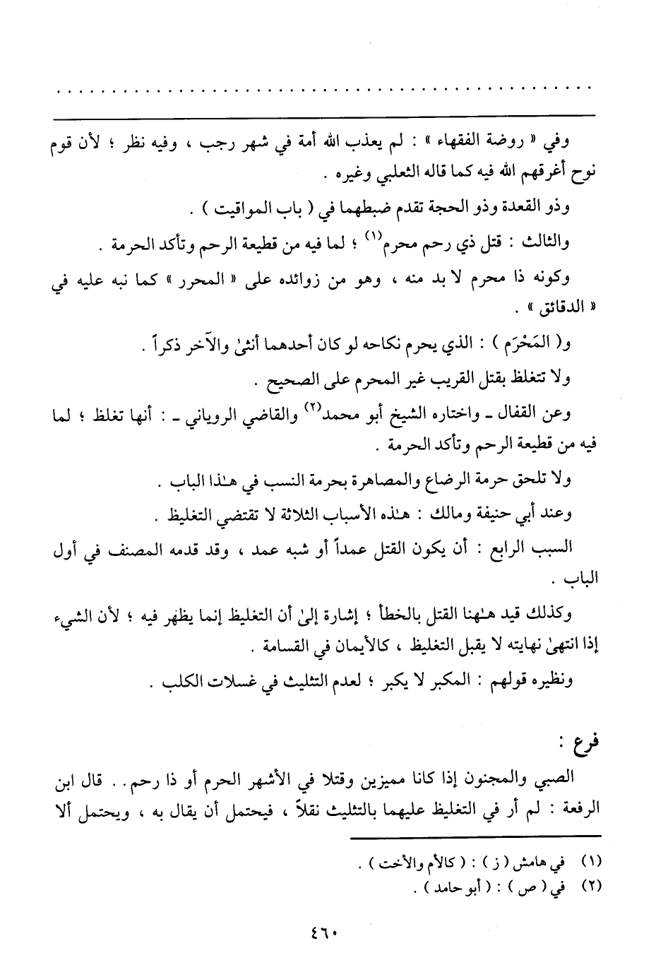وعن القفال-واختاره الشيخ أبو محمد والقاضي الروياني- أنها تغلظ: لما فيه من قطيعة الرحم وتأكد الحرمة.