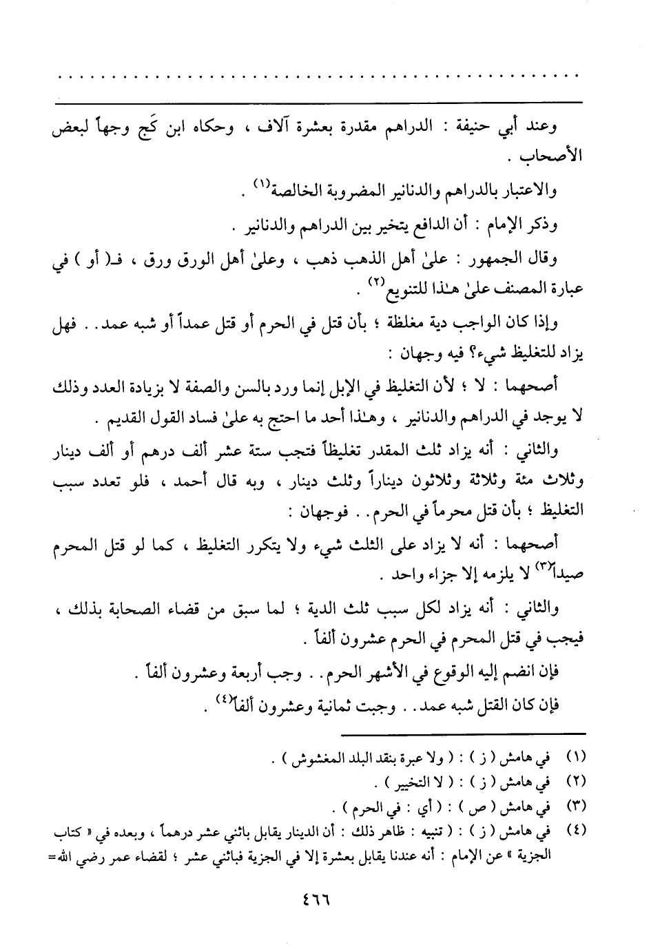 والثاني: أنه يزاد ثلث المقدر تغليظا فتجب ستة عشر ألف درهم أو ألف دينار وثلاث مئة وثلاثة وثلاثون دينارًا وثلث دينار، وبه قال أحمد، فلو تعدد سبب التغليظ؛ بأن قتل محرما في الحرم .. فوجهان: