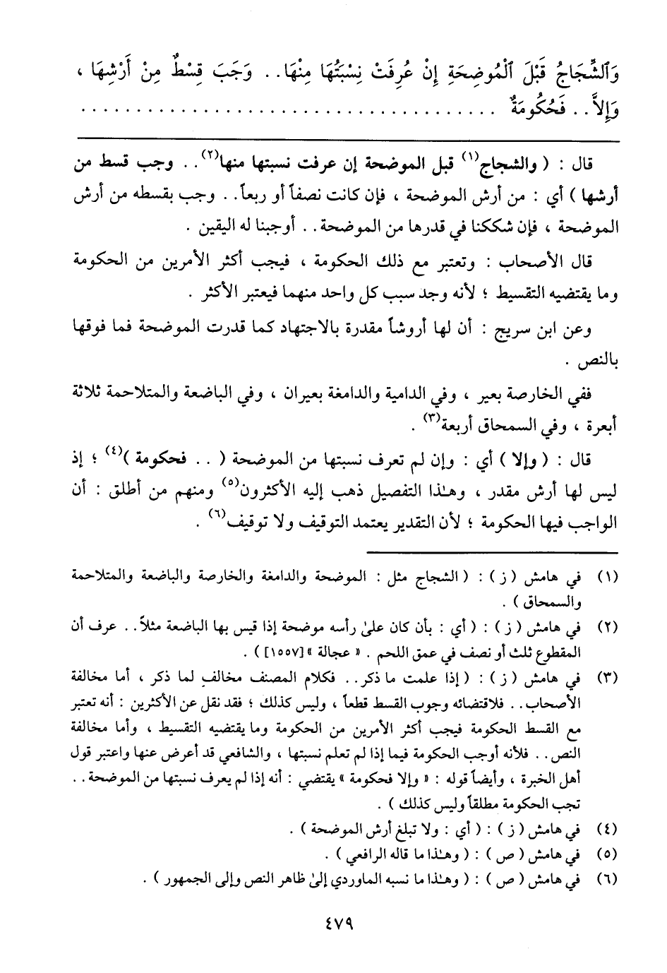 وَالشِّجَاجَ قَبلَ الَمُوضِجَةِ إنْ عُرِفَتْ نِسْبُتَهَا مِنْهَا ...... وَجَبَ قِسطٌ مِنْ أَرِشِهَا، وَإلاَّ ..... فَحُكُومةٌ