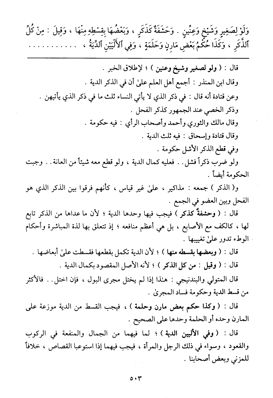 قال: (وقيل: من كل الذكر)؛ لأنه الأصل المقصود بكمال الدية,