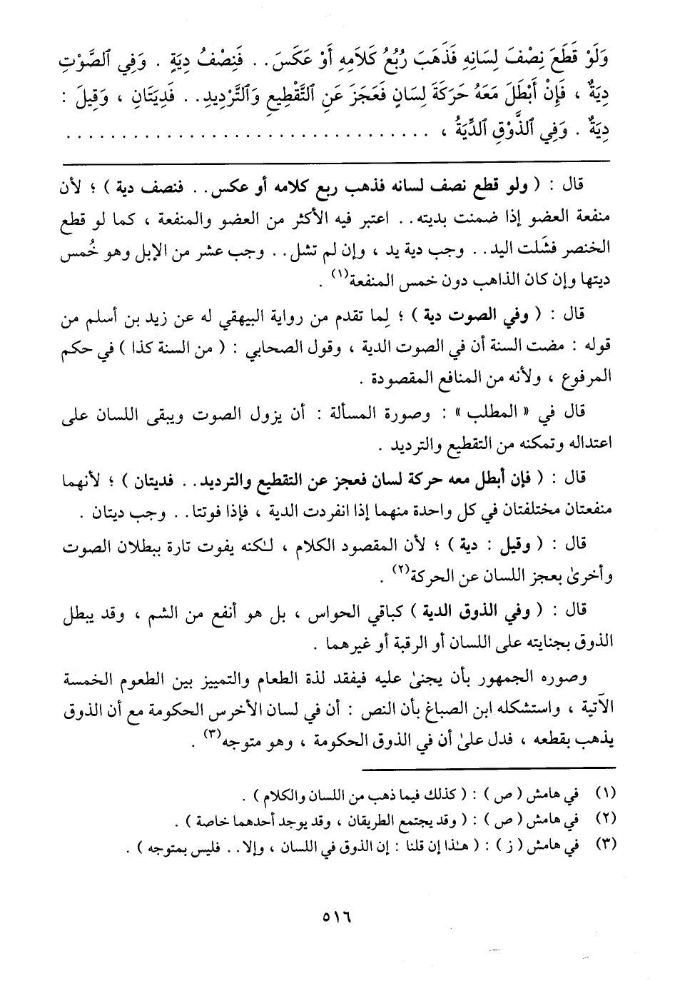 وَلُو قَطَّعَ نَصُفّ لِسانهُ فَذَهَبَ رُبْع كَلامهُ أَو عَكْس ... فَنَصِف دِيَة. وَفِيَّ الصَوْت دِيَة، فَإِنَّ أُبَطَّل مَعَهُ حَرَكَة لِسان فَعَجْز عَن التَقْطِيع وَالتَرْدِيد