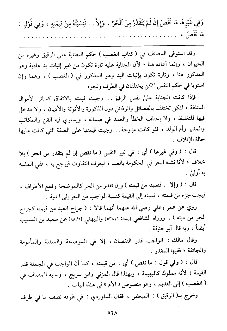 وقد استوفى المصنف فى (كتاب الغضب) حكم الجنايه على الرقيق وغيره من الحيوان، وإنما أعاده هنا لأن الجنايه عليه تاره تكون من غير إثبات يد عاديه وهو المذكور هنا، وتاره تكون بأثبات اليد وهو المذكور (الغضب) وهما وأن استويا فى حكم النفس لكن يختلفان فى الطرف ونحوه.