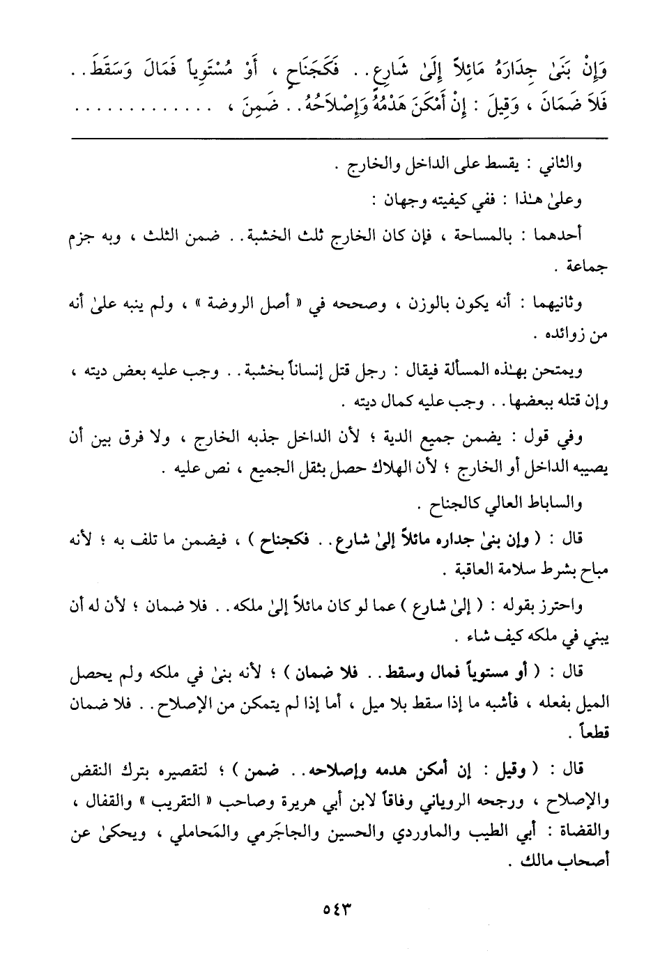 واحترز بقوله: (إلى شارع) عما لو كان مائلا إلى ملكه .. فلا ضمان؛ لأن له أن بيني في ملكه كيف شاء.