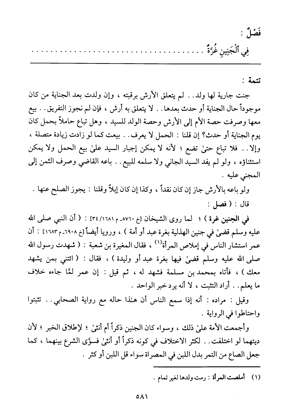 فِي الجَنِينِ غُرَّة