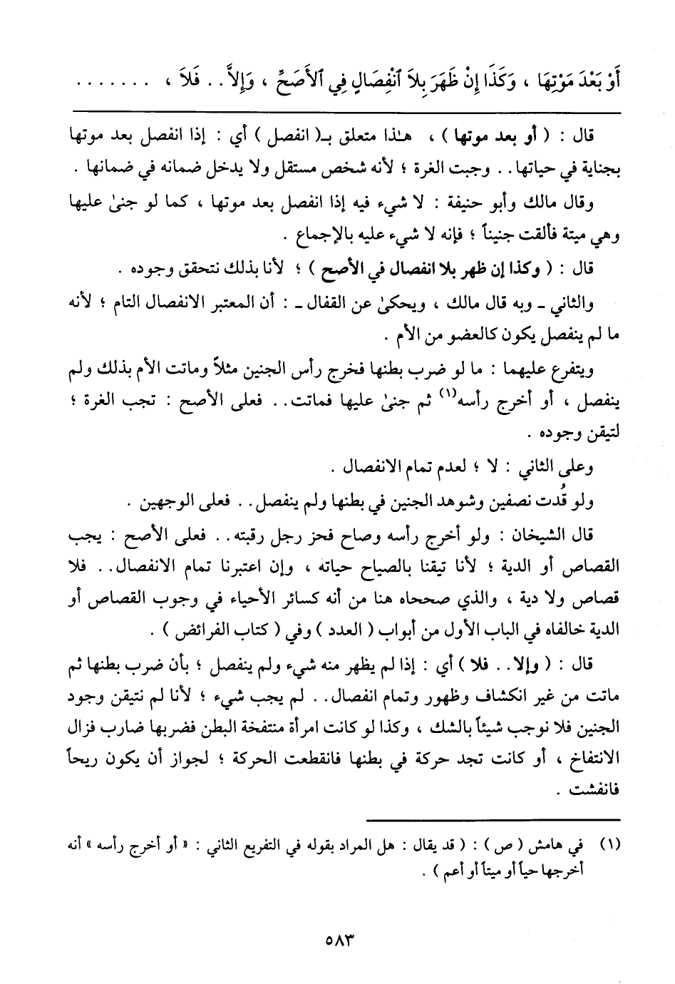 قال الشيخان: ولو أخرج رأسه وصاح فحز رجل رقبته .. فعلى الأصح: يجب القصاص أو الدية، لأن تيقنا بالصياح حياته، وإن اعتبرنا تمام الانفصال .. فلا قصاص ولا دية، والذي صححاه هنا من أنه كسائر الأحياء في وجوب القصاص أو الدية خالفاه في الباب الأول من أبواب (العدد) وفي كتاب الفرائض).