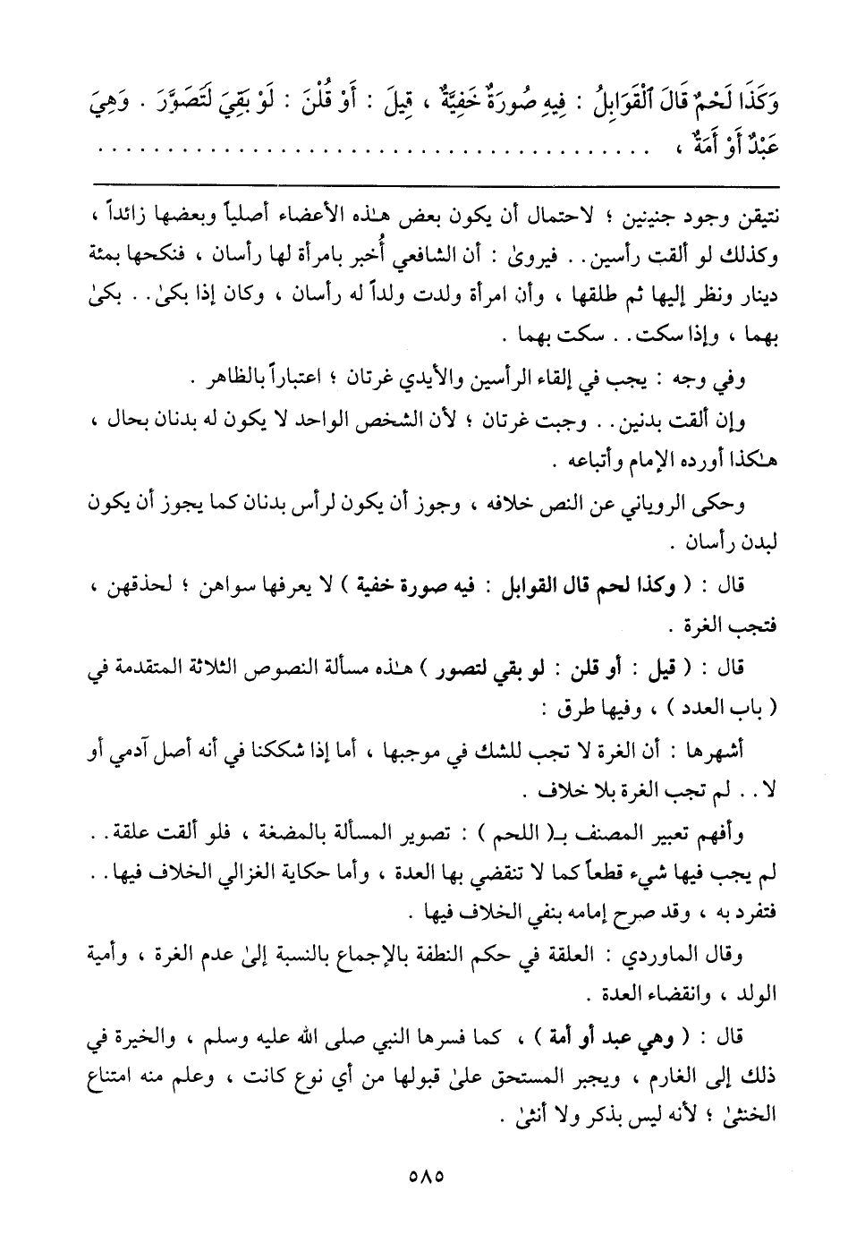 أشهرها: أن الغرة لا تجب للشك في موجبها، أما إذا شككنا في أنه أصل آدمي أو لا .. لم تجب الغرة بلا خلاف.