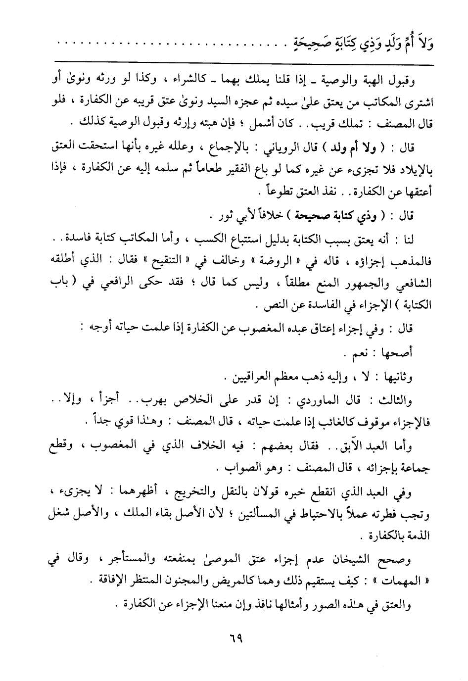 وَلاَ أُمِّ وَلدٍ وَذِي كِتَابَةٍ صَحِيحَةٍ