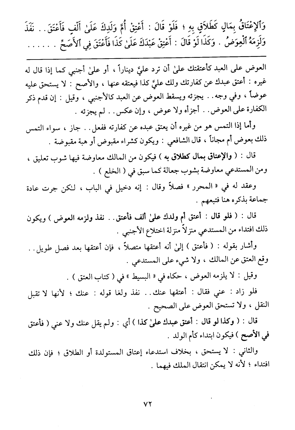 العوض على العبد كأعتقتك على أن ترد علي دينارًا، أو على أجنبي كما إذا قال له غيره: أعتق عبدك عن كفارتك ولك علي كذا فيعتقه عنها، والأصح: لا يستحق عليه عوضًا وفي وجه .. يجزئه ويسقط العوض عن العبد كالأجنبي، وقيل: إن قدم ذكر الكفارة على العوض .. أجزأه ولا عوض، وإن عكس .. لم يجزئه.