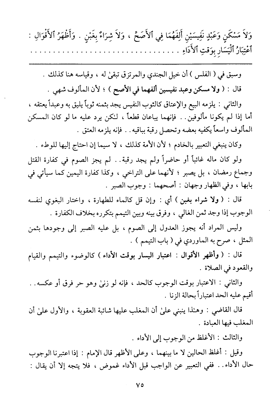 وقيل: أغلظ الحالين لا ما بينهما، وعلى الأظهر قال الإمام: إذا اعتبرنا الوجوب حال الأداء .. ففي التعبير عن الواجب قبل الأداء غموض، فلا يتجه إلا أن يقال: