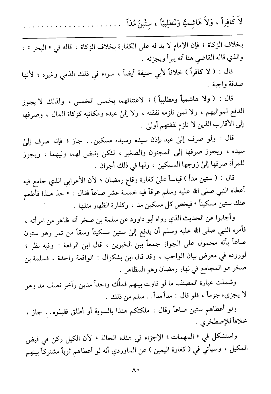 لاَ كاَفِرًا، وَلاَ هَاشِميًّا وَمُطلِبيًّا، سِتِّينَ مُدًّا