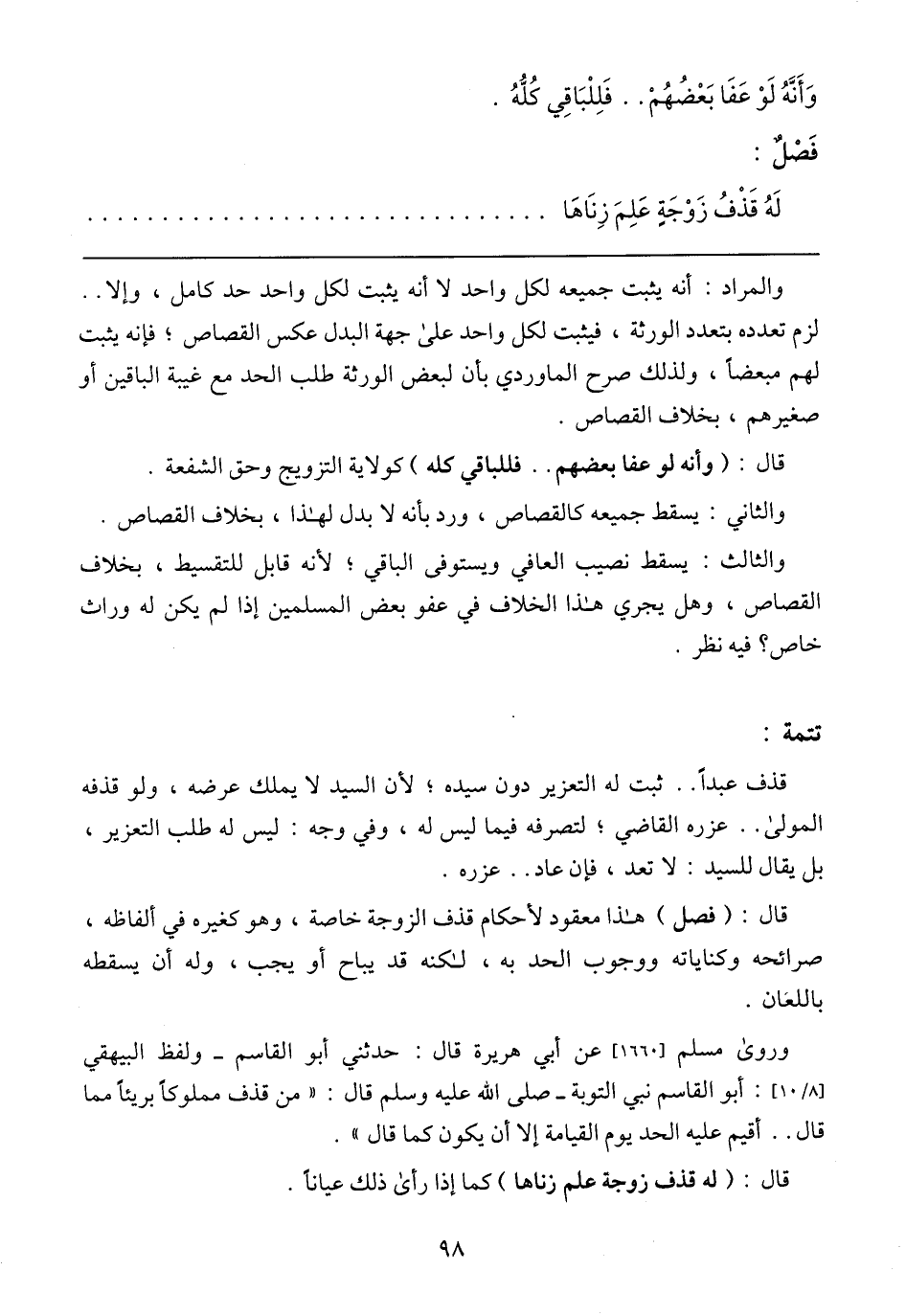القصاص، وهل يجري هذا الخلاف في عفو بعض المسلمين إذا لم يكن له وراث خاص؛ فيه نظر.