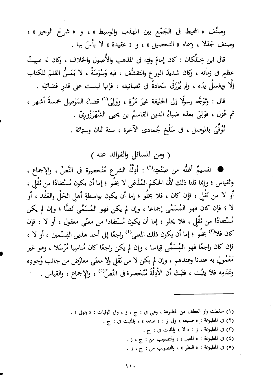 تَقْسِيم أَظُنهُ من صَنعته أَدِلَّة الشَّرْع منحصرة فِي النَّص وَالْإِجْمَاع وَالْقِيَاس وَإِنَّمَا قُلْنَا ذَلِك لِأَن الحكم الْمُدعى لَا يَخْلُو إِمَّا أَن يكون مستفادا من نقل أَو لَا من نقل فَإِن كَانَ فَلَا يَخْلُو إِمَّا أَن يكون بِوَاسِطَة أهل الْحل وَالْعقد أَو لَا فَإِن كَانَ فَهُوَ الْمُسَمّى إِجْمَاعًا وَإِن لم يكن فَهُوَ الْمُسَمّى نصا وَإِن لم يكن مستفادا من نقل فَلَا يَخْلُو إِمَّا أَن يكون مستفادا من معنى مَعْقُول أَو لَا فَإِن كَانَ فَلَا يَخْلُو إِمَّا أَن يكون ذَلِك الْمَعْنى رَاجعا إِلَى أحد هذَيْن الْقسمَيْنِ أَو لَا فَإِن كَانَ رَاجعا فَهُوَ الْمُسَمّى قِيَاسا وَإِن لم رَاجعا كَانَ مناسبا مُرْسلا وَهُوَ غير مَعْمُول بِهِ عندنَا وَعِنْدهم وَإِن لم يكن لَا من نقل وَلَا معنى معَارض من جَانب وجوده وَعَدَمه فَلَا يثبت فَثَبت أَن الْأَدِلَّة منحصرة فِي النَّص وَالْإِجْمَاع وَالْقِيَاس