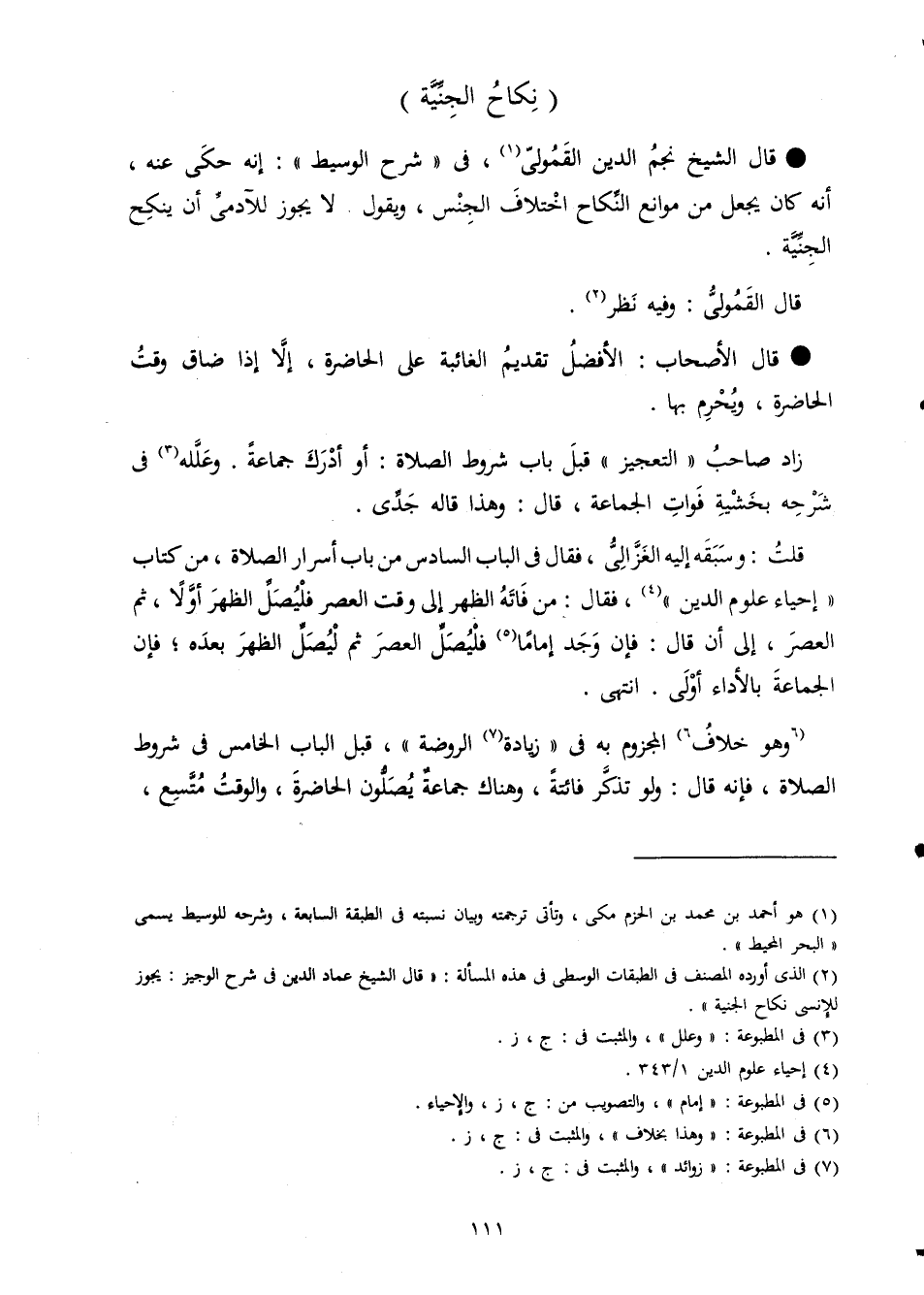 قَالَ الشَّيْخ نجم الدّين الْقَمُولِيّ فِي شرح الْوَسِيط إِنَّه حكى عَنهُ أَنه كَانَ يَجْعَل من مَوَانِع النِّكَاح اخْتِلَاف الْجِنْس وَيَقُول لَا يجوز للآدمي أَن ينْكح الجنية