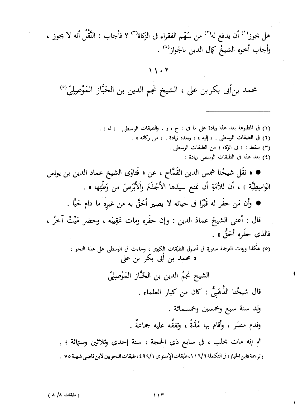 1102 - مُحَمَّد بن أبي بكر بن عَليّ الشَّيْخ نجم الدّين بن الخباز الْموصِلِي