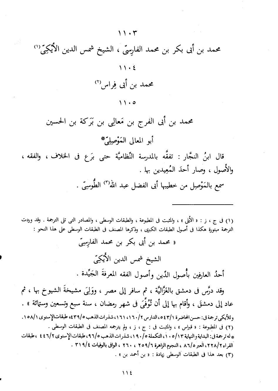 1103 - مُحَمَّد بن أبي بكر بن مُحَمَّد الْفَارِسِي الشَّيْخ شمس الدّين الأيكي