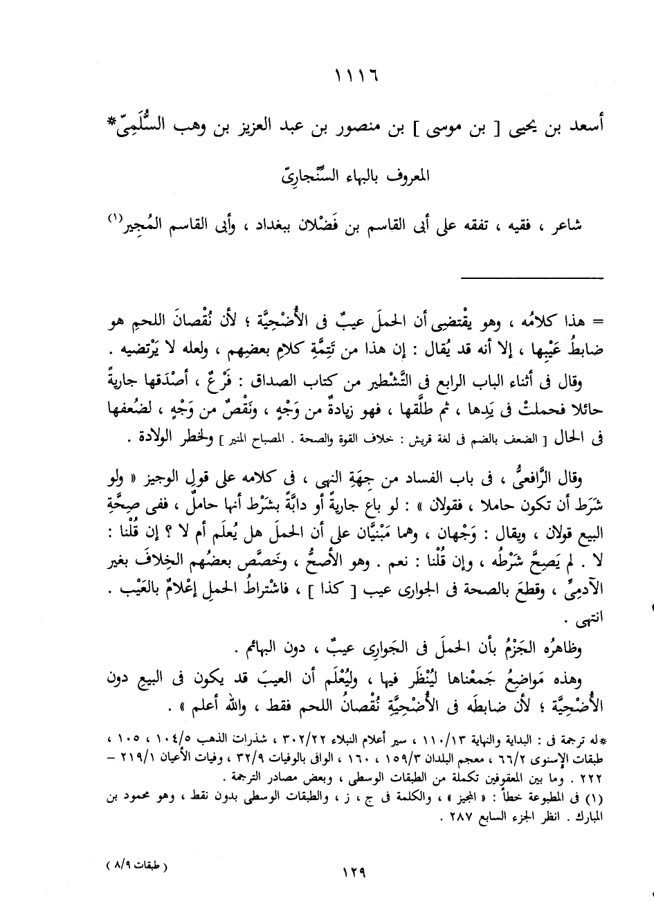 1116 - أسعد بن يحيى بن مُوسَى بن مَنْصُور بن عبد الْعَزِيز بن وهب السّلمِيّ الْمَعْرُوف بالبهاء السنجاري