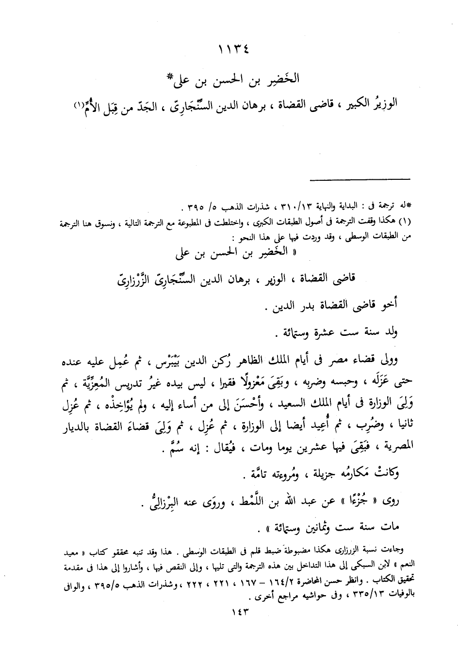 الْوَزير الْكَبِير قَاضِي الْقُضَاة برهَان الدّين السنجاري الْجد من قبل الْأُم