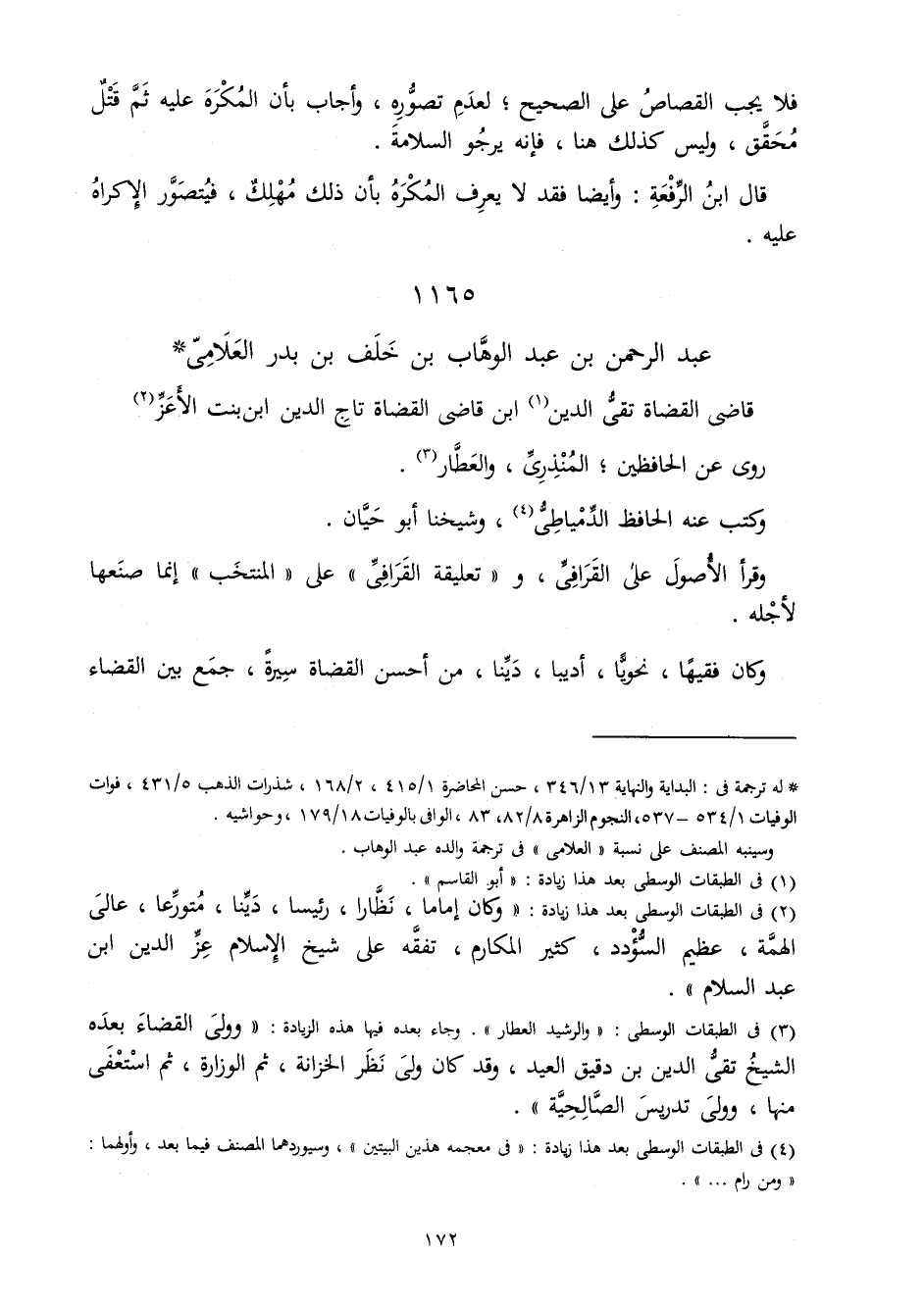 1165 - عبد الرَّحْمَن بن عبد الْوَهَّاب بن خلف بن بدر العلامي
