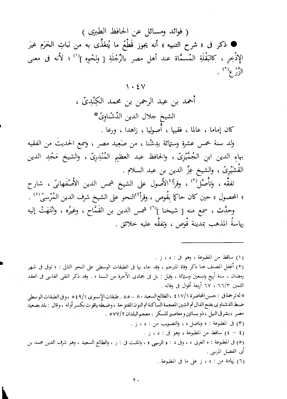 1047 - أَحْمد بن عبد الرَّحْمَن بن مُحَمَّد الْكِنْدِيّ الشَّيْخ جلال الدّين الدشناوي