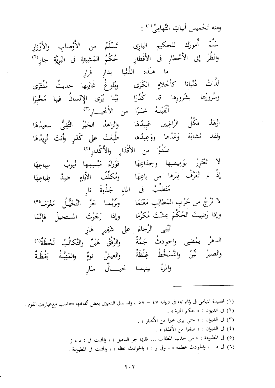 وَمِنْه تخميس أَبْيَات التهامي