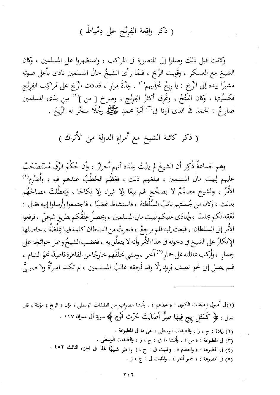 (ذكر كائنة الشَّيْخ مَعَ أُمَرَاء الدولة من الأتراك)