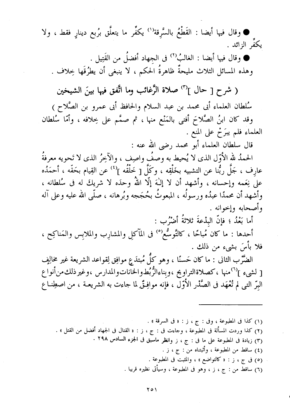 شرح حَال صَلَاة الرغائب وَمَا اتّفق فِيهَا بَين الشَّيْخَيْنِ سُلْطَان الْعلمَاء أبي مُحَمَّد بن عبد السَّلَام والحافظ أبي عَمْرو بن الصّلاح