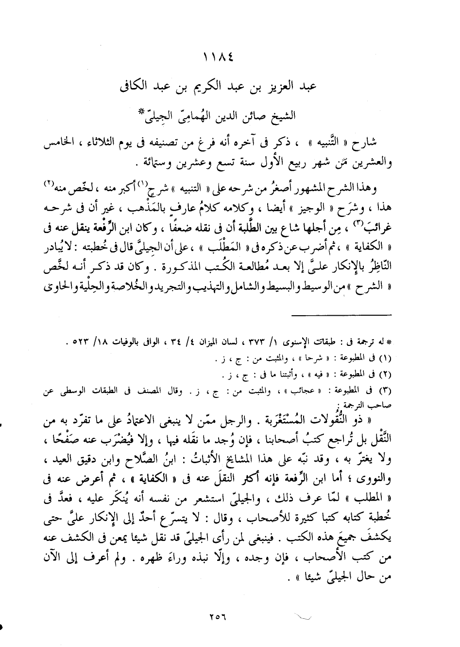 1184 - عبد الْعَزِيز بن عبد الْكَرِيم بن عبد الْكَافِي الشَّيْخ صائن الدّين الهمامي الجيلي
