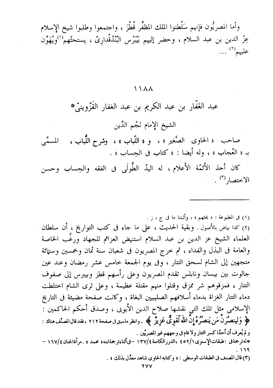 1188 - عبد الْغفار بن عبد الْكَرِيم بن عبد الْغفار الْقزْوِينِي الشَّيْخ الإِمَام نجم الدّين