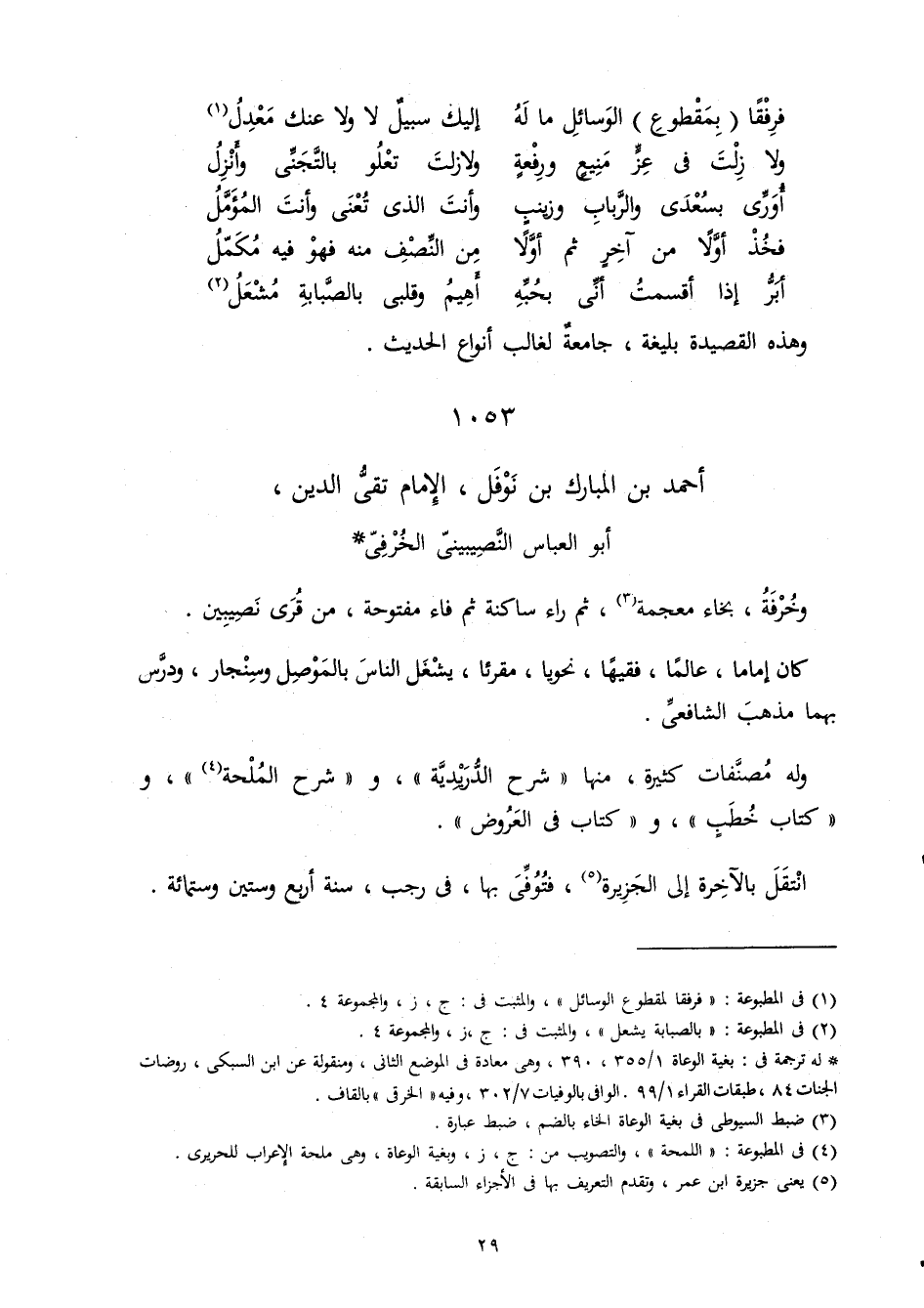 1053 - أَحْمد بن الْمُبَارك بن نَوْفَل الإِمَام تَقِيّ الدّين أَبُو الْعَبَّاس النصيبيني الخرفي