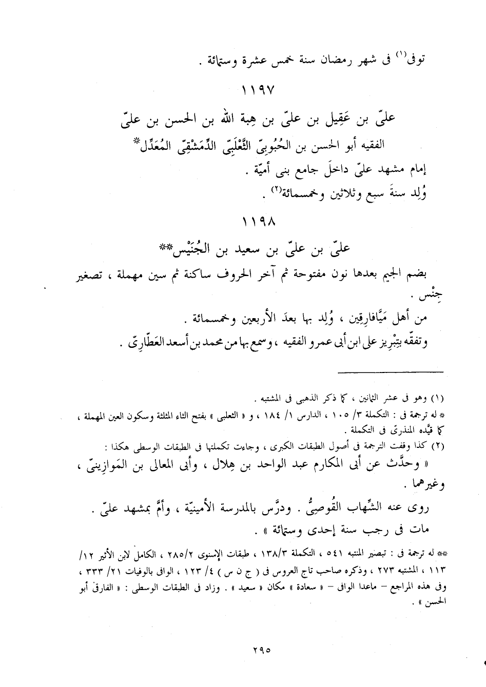 1197 - عَليّ بن عقيل بن عَليّ بن هبة الله بن الْحسن بن عَليّ الْفَقِيه أَبُو الْحسن بن الحبوبي الثَّعْلَبِيّ الدِّمَشْقِي الْمعدل