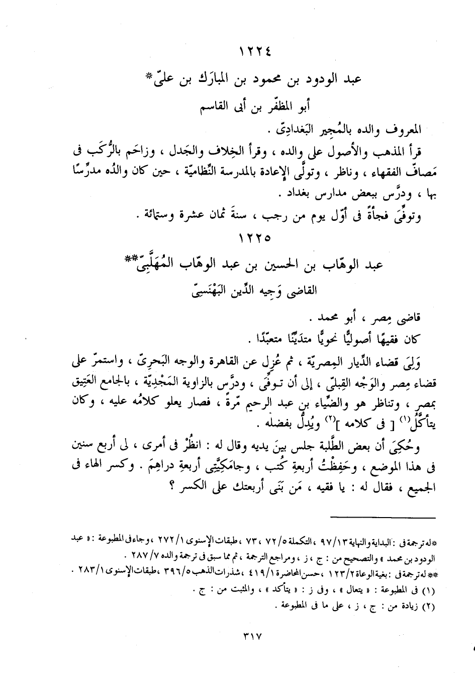 1225 - عبد الْوَهَّاب بن الْحُسَيْن بن عبد الْوَهَّاب المهلبي القَاضِي وجيه الدّين البهنسي