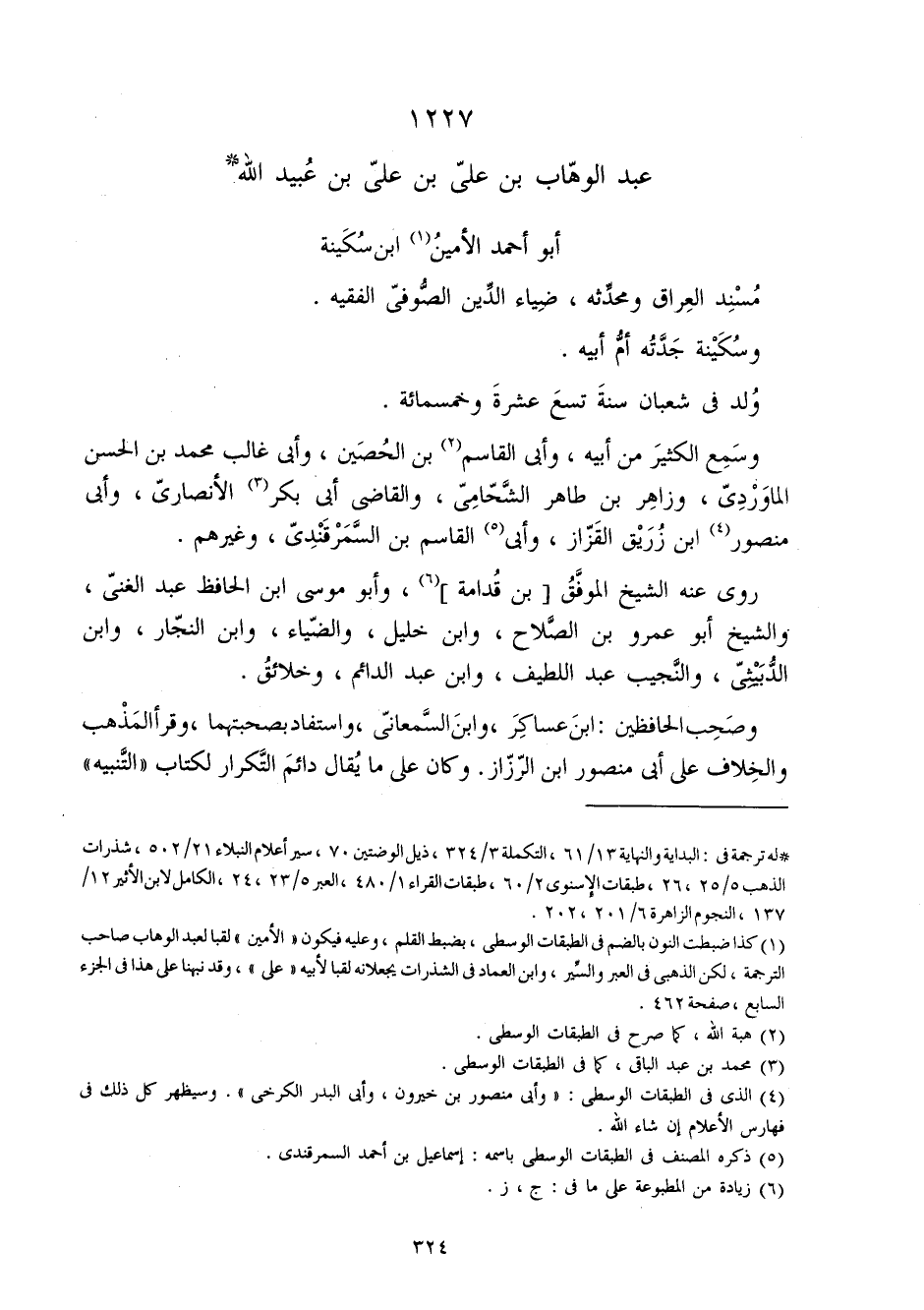 1227 - عبد الْوَهَّاب بن عَليّ بن عَليّ بن عبيد الله أَبُو أَحْمد الْأمين ابْن سكينَة
