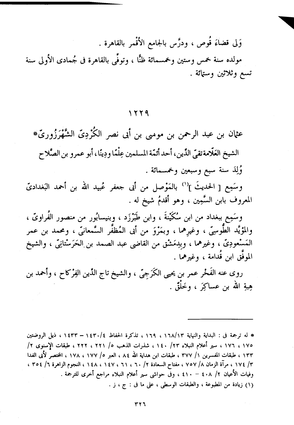 1229 - عُثْمَان بن عبد الرَّحْمَن بن مُوسَى بن أبي نصر الْكرْدِي الشهرزوري