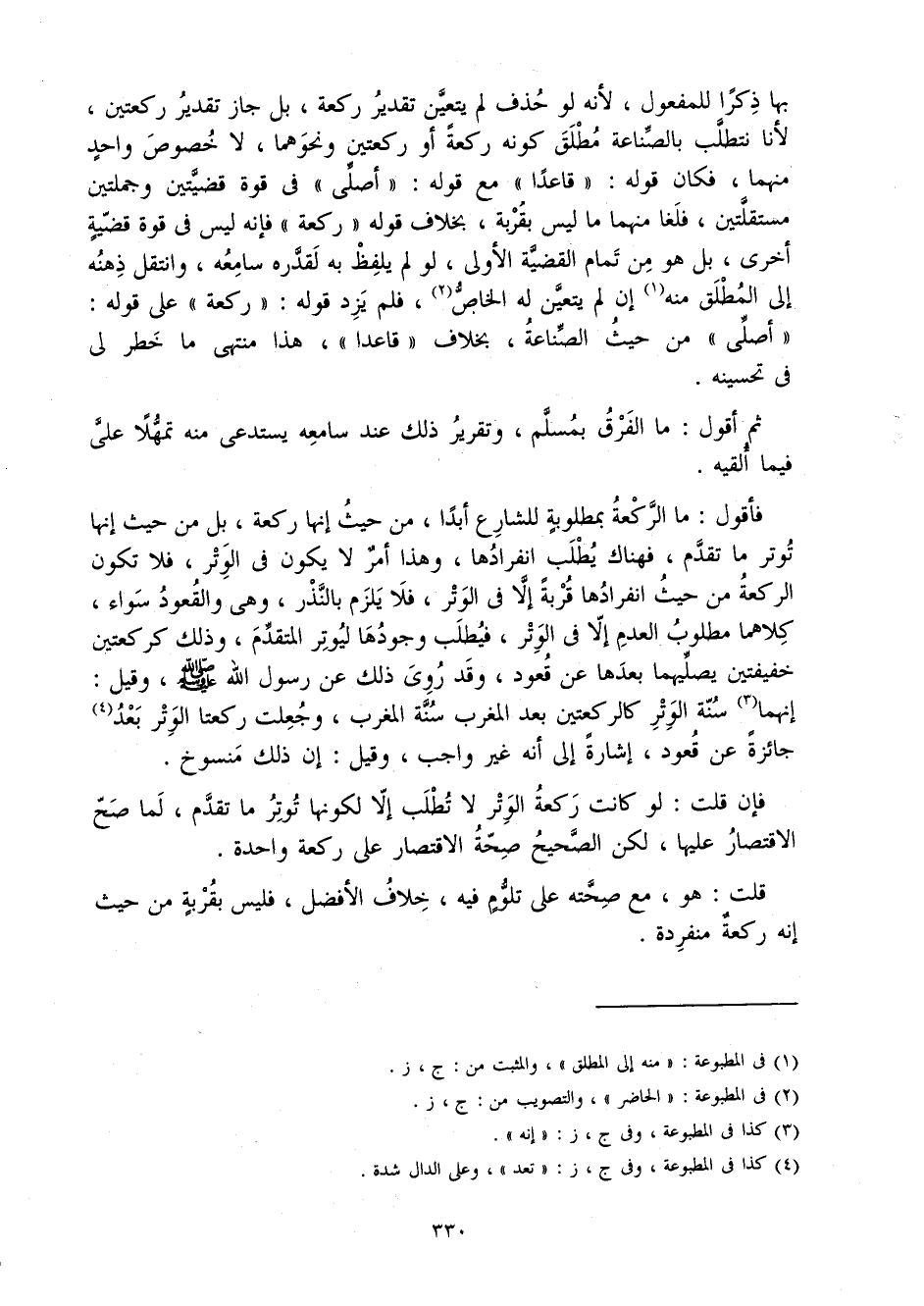 فَأَقُول مَا الرَّكْعَة بمطلوبة للشارع أبدا من حَيْثُ إِنَّهَا رَكْعَة بل من حَيْثُ إِنَّهَا توتر مَا تقدم فهناك يطْلب انفرادها وَهَذَا أَمر لَا يكون فِي الْوتر فَلَا تكون الرَّكْعَة من حَيْثُ انفرادها قربَة إِلَّا فِي الْوتر فَلَا يلْزم بِالنذرِ وَهِي وَالْقعُود سَوَاء كِلَاهُمَا مَطْلُوب الْعَدَم إِلَّا فِي الْوتر فيطلب وجودهَا ليوتر الْمُتَقَدّم وَذَلِكَ كركعتين خفيفتين يُصَلِّيهمَا بعْدهَا عَن قعُود وَقد روى ذَلِك عَن رَسُول الله صلى الله عَلَيْهِ وَسلم وَقيل إنَّهُمَا سنة الْوتر كالركعتين بعد الْمغرب سنة الْمغرب وَجعلت رَكعَتَا الْوتر بعد جَائِزَة عَن قعُود إِشَارَة إِلَى أَنه غير وَاجِب وَقيل إِن ذَلِك مَنْسُوخ