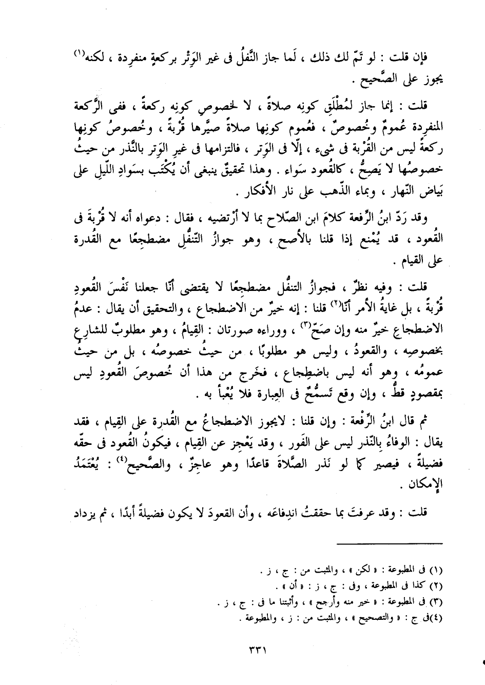 وَقد رد ابْن الرّفْعَة كَلَام ابْن الصّلاح بِمَا لَا أرتضيه فَقَالَ دَعْوَاهُ أَنه لَا قربَة فِي الْقعُود قد يمْنَع إِذا قُلْنَا بالأصح وَهُوَ جَوَاز التَّنَفُّل مُضْطَجعا مَعَ الْقُدْرَة على الْقيام