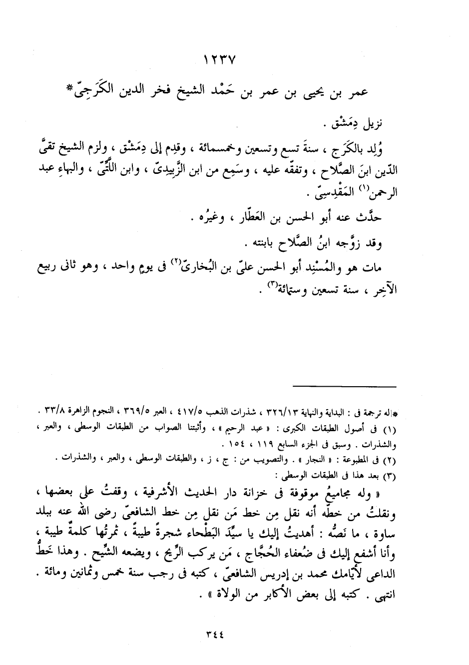 1237 - عمر بن يحيى بن عمر بن حمد الشَّيْخ فَخر الدّين الكرجي