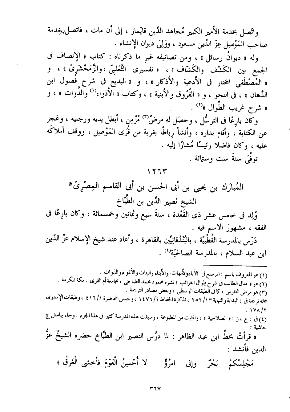1263 - الْمُبَارك بن يحيى بن أبي الْحسن بن أبي الْقَاسِم الْمصْرِيّ الشَّيْخ نصير الدّين بن الطباخ