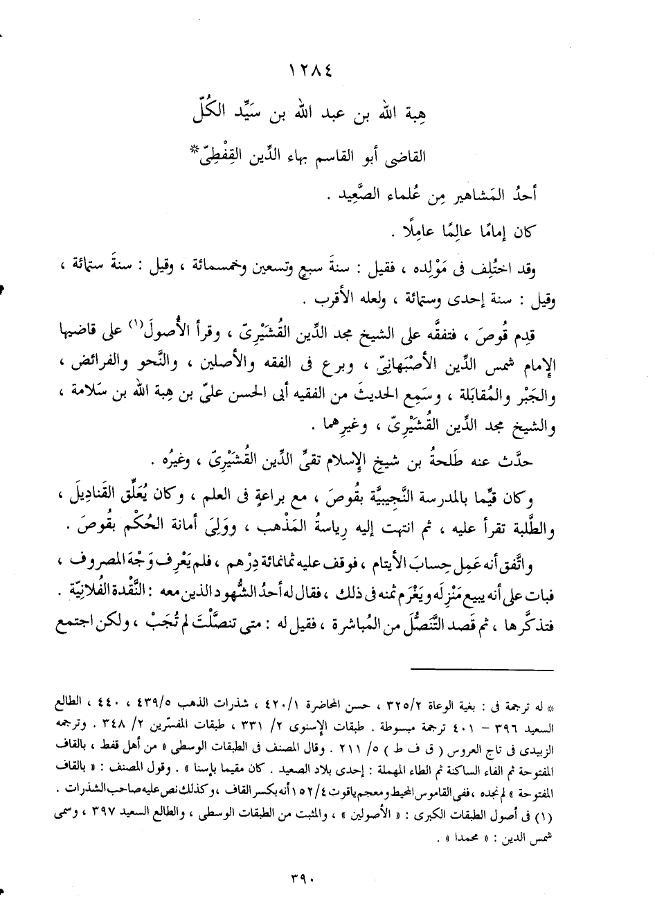 1284 - هبة الله بن عبد الله بن سيد الْكل القَاضِي أَبُو الْقَاسِم بهاء الدّين القفطي