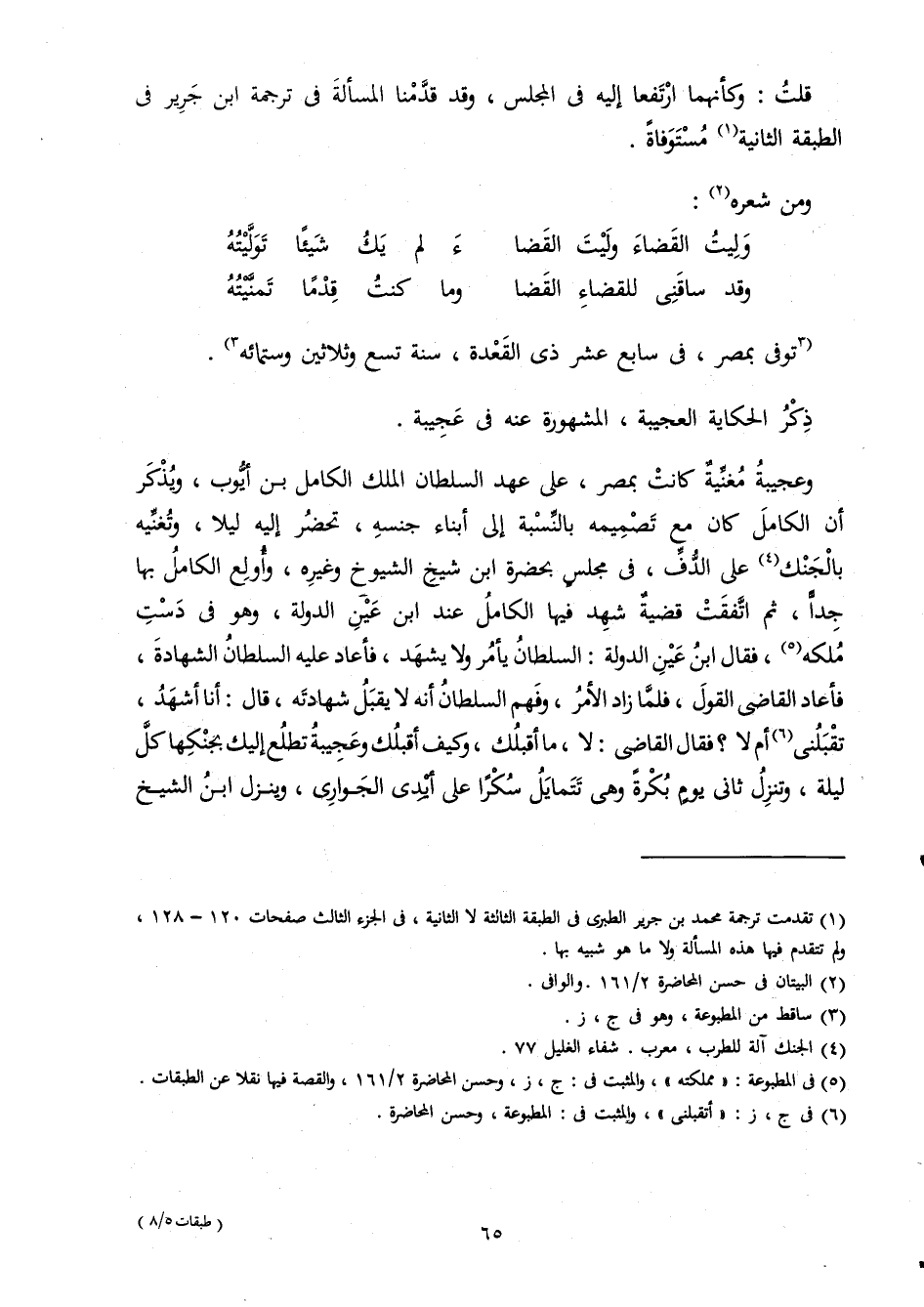 قلت وكأنهما ارتفعا إِلَيْهِ فِي الْمجْلس وَقد قدمنَا الْمَسْأَلَة فِي تَرْجَمَة ابْن جرير فِي الطَّبَقَة الثَّانِيَة مستوفاة